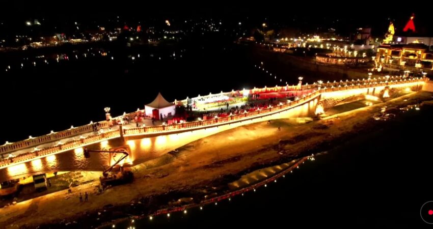 • Pedestrian bridge with arches and pier proposed on Rudrasagar lake