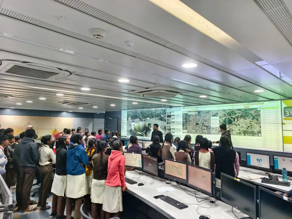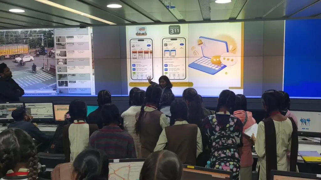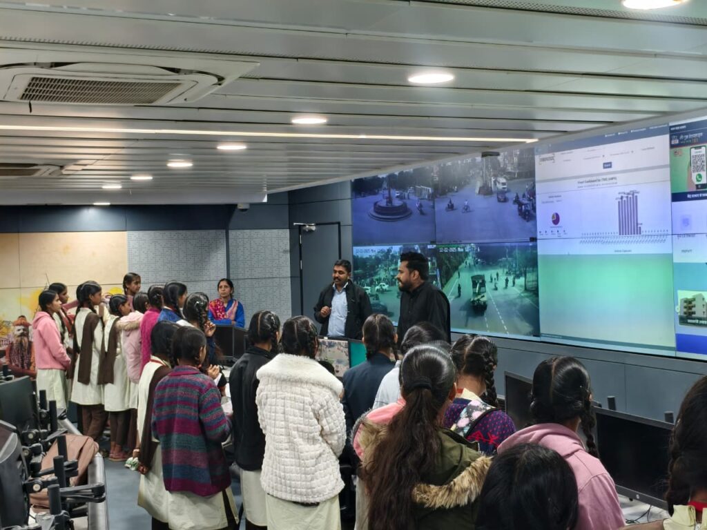 As part of the community outreach programme, students at Government Girls Higher Secondary School, Sarafa and Government H.S.S School, Pavasa visited the Integrated Command and Control Center at Ujjain Smart City.