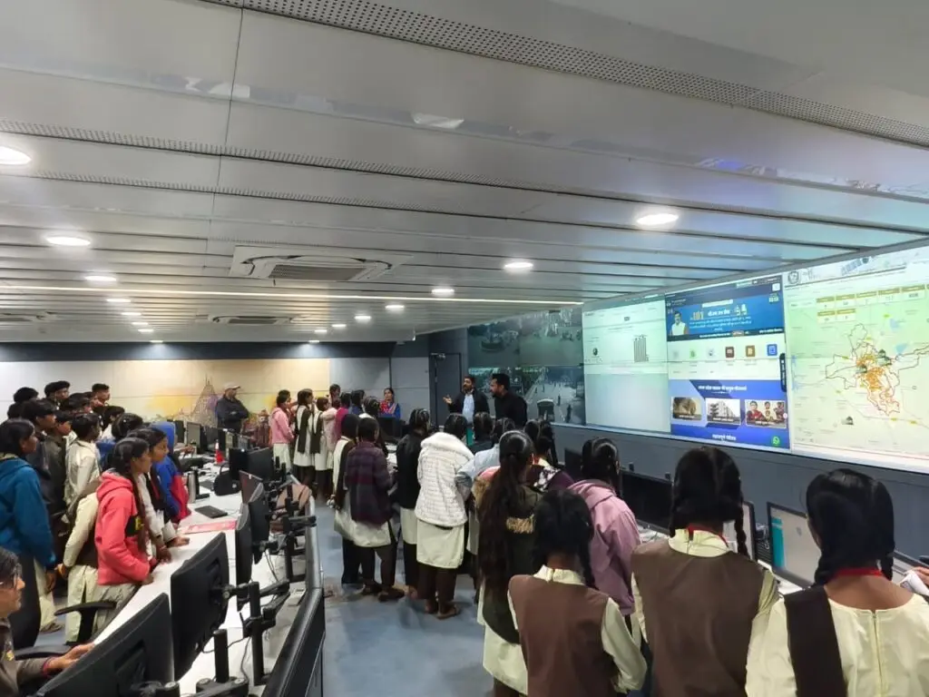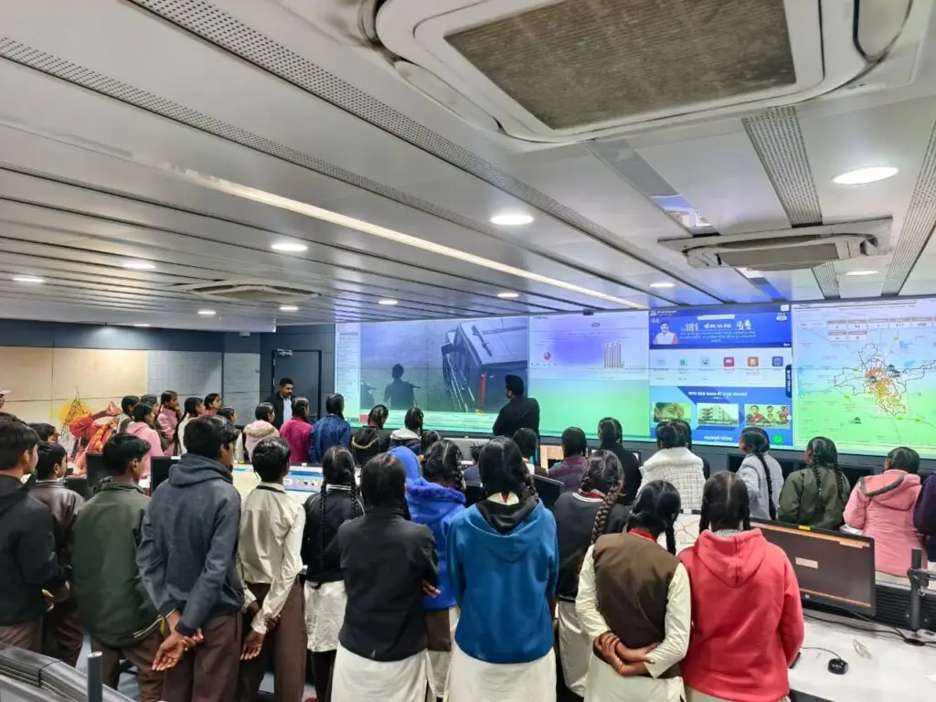 Students of Government Higher Secondary School, Pavasa, Ujjain visited the Integrated Command and Control Centre located in Ujjain Smart City.
