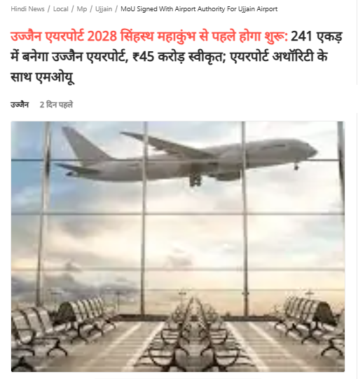 सार्वजनिक निजी भागीदारी पर उज्जैन में मल्टी मॉडल ट्रांजिट हब के विकास के लिए रूचि